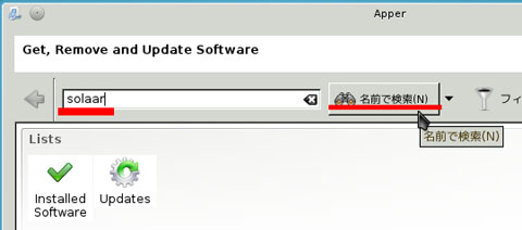 「solaar - Logitech Unifying ~」を選択して「適用」、これでSolaarのインストールは完了です。なんかちょっと画面がバグっていますが気にしないでくださいLinuxでは稀によくあることです。
