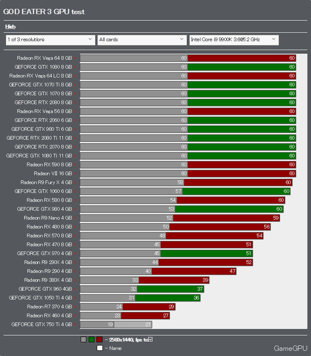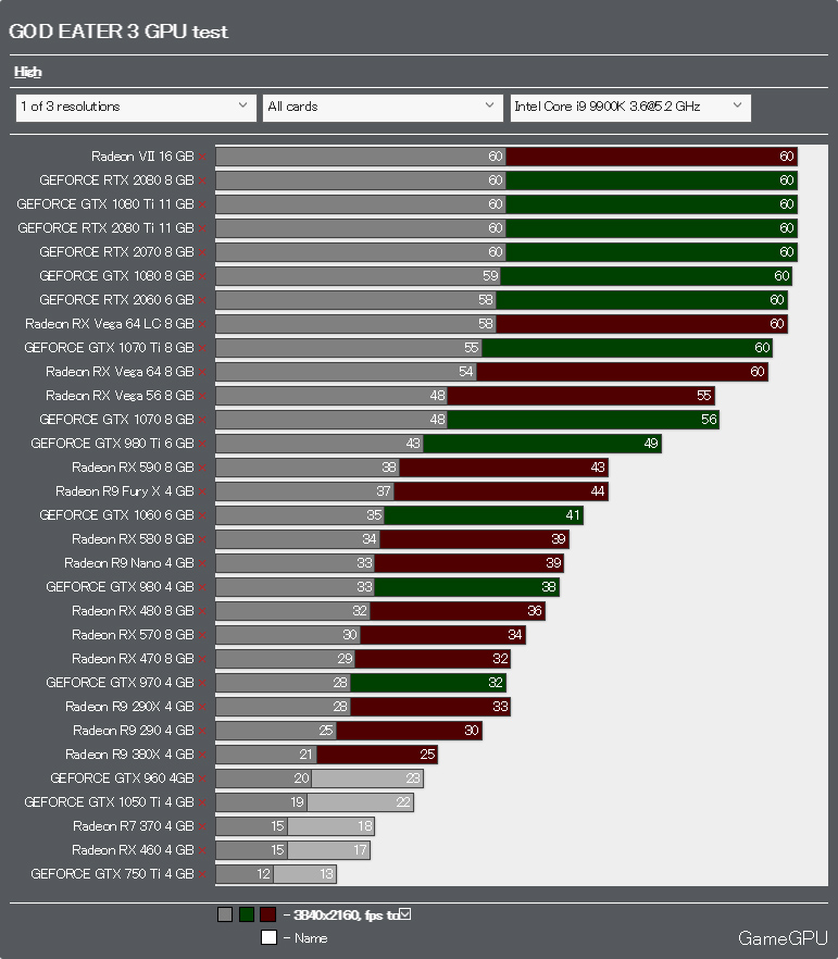 上記シーンを1920 x 1080最高設定でMin 60 fpsを保つにはGTX 970 3.5GB(Min 60 fps) / RX 570 8GB(Min 60 fps)以上が可能となっています。