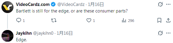 質問: Bartlett LakeはEdge向けですか? それとも、これら(10P-Coreモデルなど)はコンシューマー向けのパーツですか?