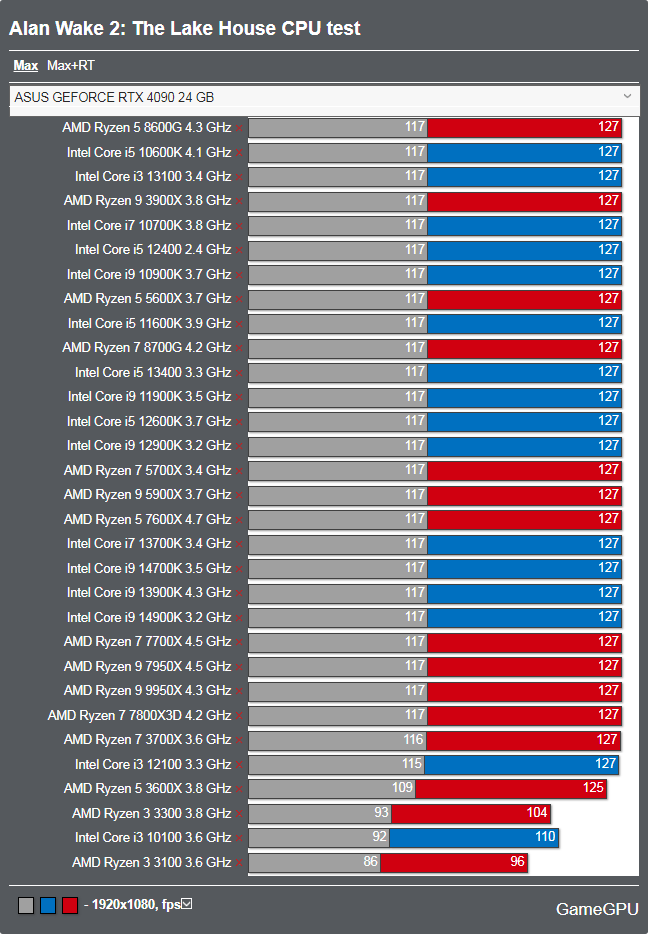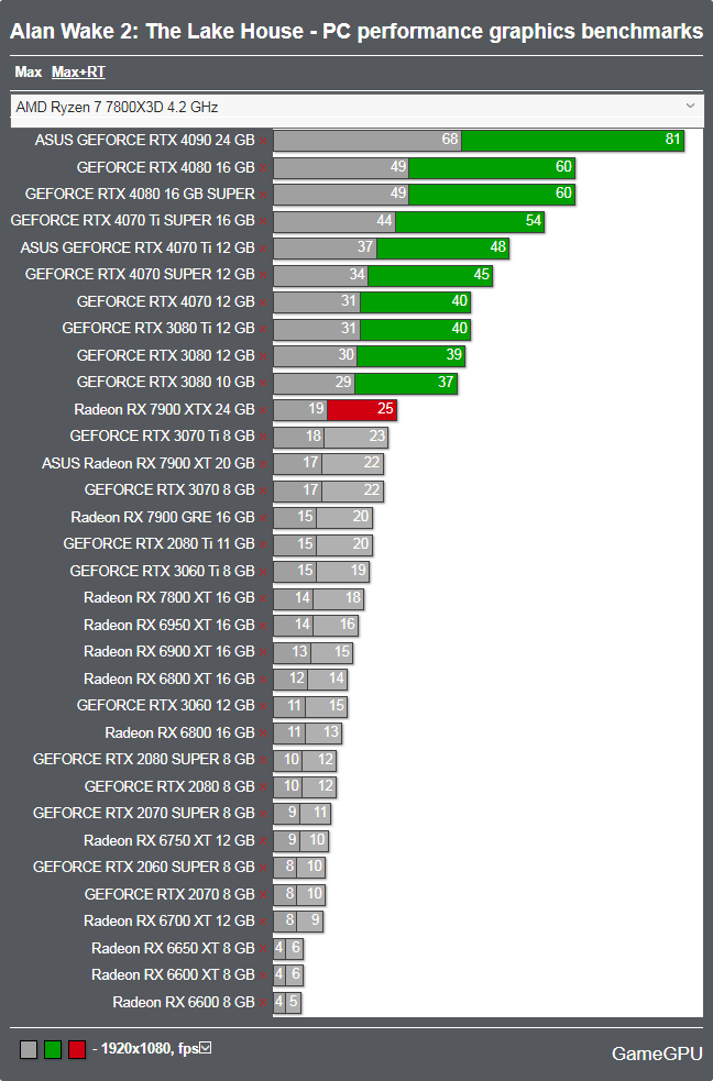 『Alan Wake 2: The Lake House』の各種ベンチマーク
