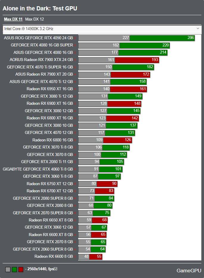 Alone in the Darkベンチマーク - 2560x1440 DirectX 11