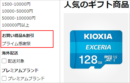 『プライム感謝祭』を選択してみてください。(スマホからはカテゴリーを選択してちょっと下にある『絞り込み』 → 『お買い得品&割引』) するとセール対象商品が表示されます。