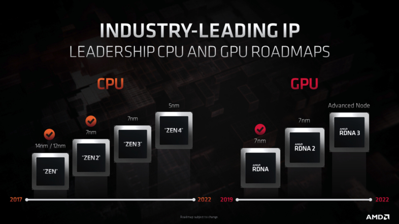 AMD、2020年版CPU/GPUロードマップを公開。Zen 4は5nm。RDNA 2はワットパフォーマンス50%向上