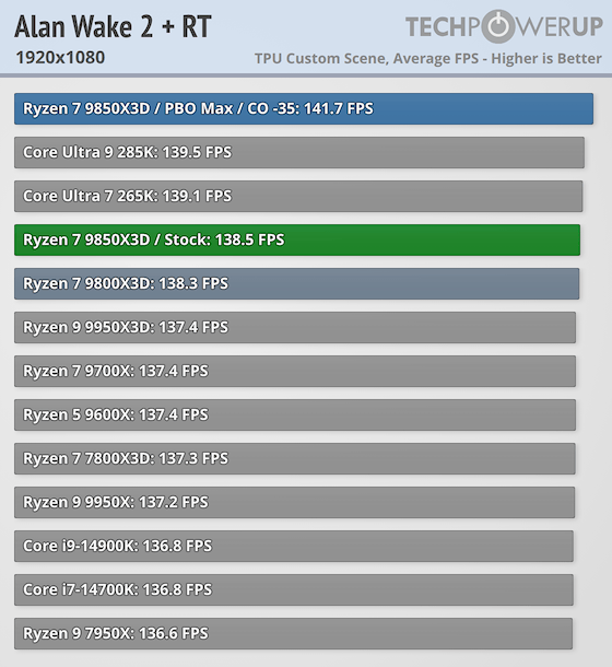 Ryzen 7 9850X3D | Alan Wake 2 (RT): 138.5 fps