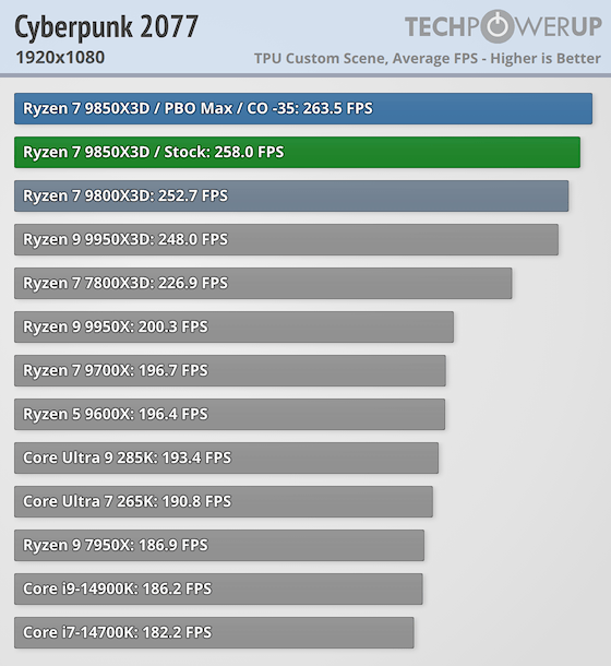 Ryzen 7 9850X3D | サイバーパンク2077: 258.0 fps