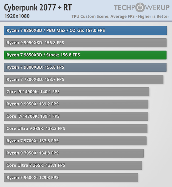Ryzen 7 9850X3D | サイバーパンク2077(RT): 156.8 fps