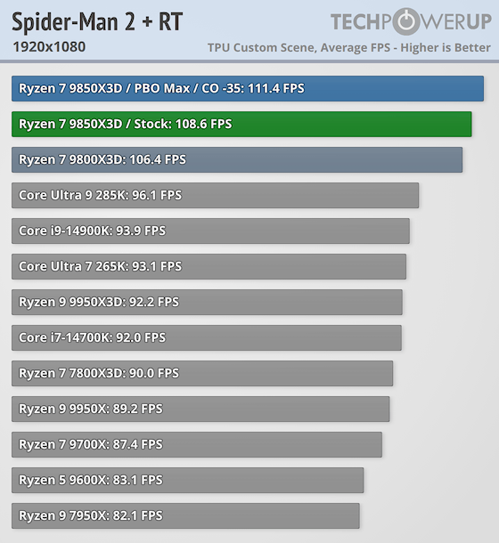 Ryzen 7 9850X3D | Marvel’s Spider-Man 2 (RT): 108.6 fps