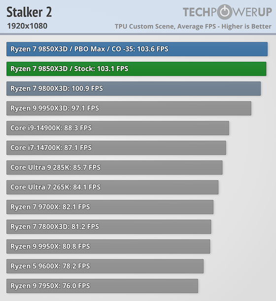 Ryzen 7 9850X3D | S.T.A.L.K.E.R. 2: Heart of Chornobyl: 103.1 fps