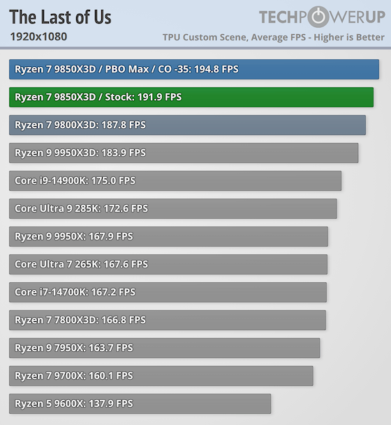 Ryzen 7 9850X3D | The Last of Us: 191.9 fps