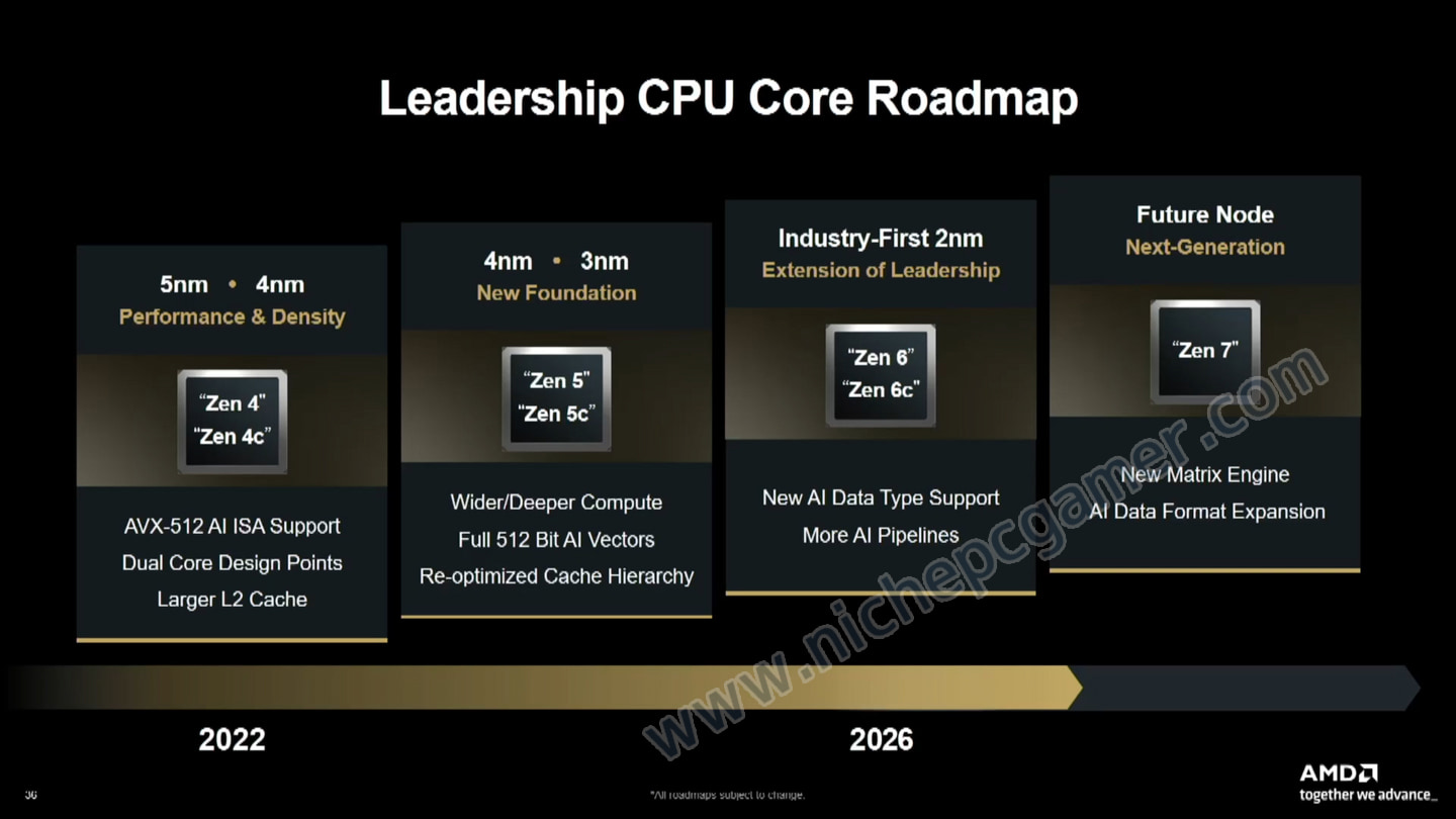 AMD、ZenアーキテクチャCPUの最新ロードマップを公開。新たにZen 7が登場。2026年にはZen 6を投入