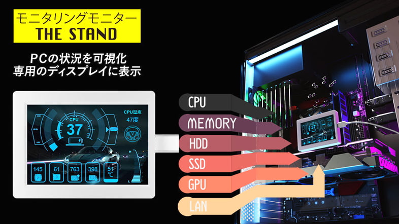 PCの稼動状況が一目でわかる『THE STAND』が発売。USBバスパワー動作の3.5インチ小型モニター
