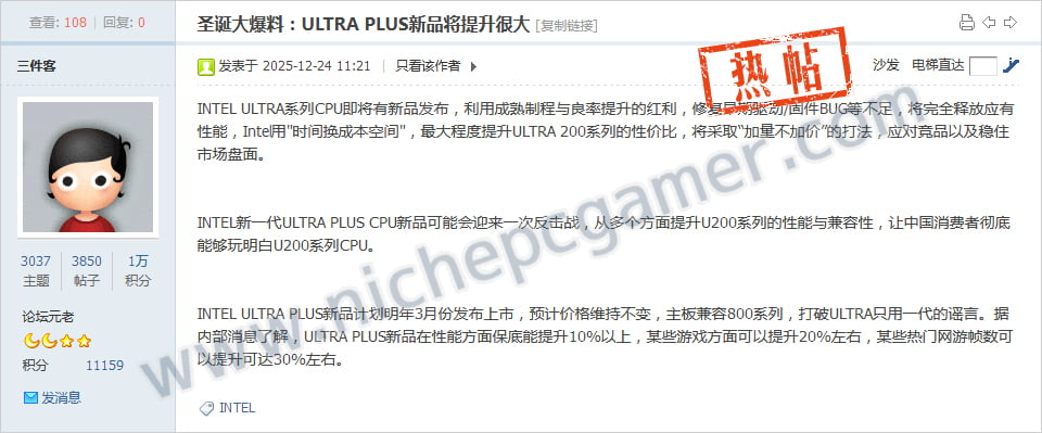 中国語圏フォーラム博板堂のリーカー、三件客氏は、Arrow Lake Refresh製品について以下の3点を主張しています。
