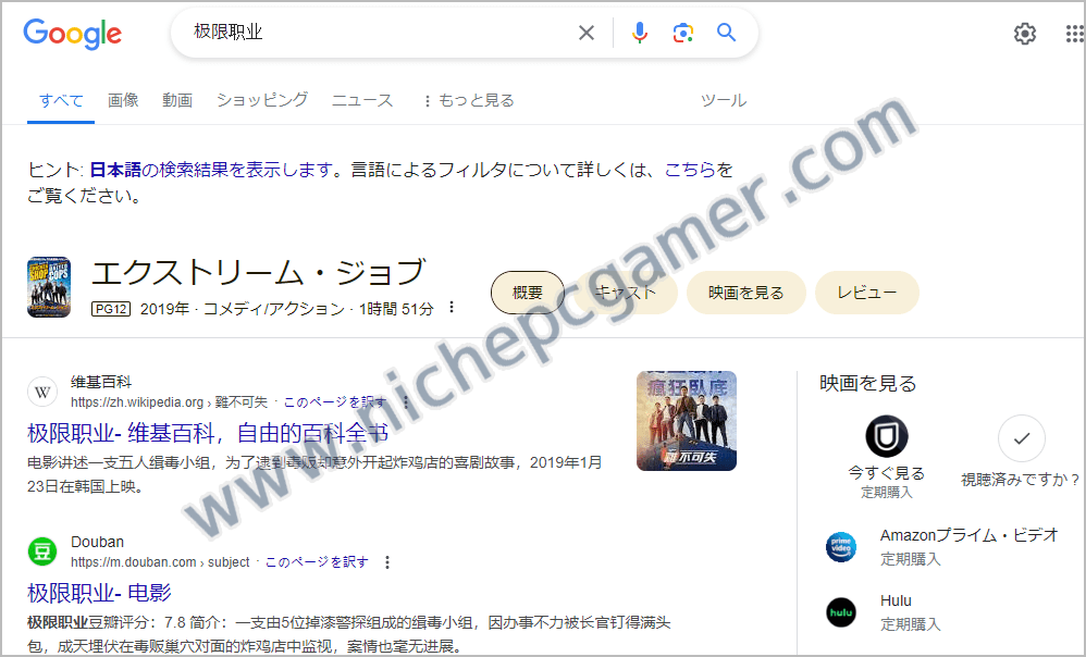 いったいなんのファイルか気になったので検索してみました。ファイル名にある『极限职业』および『Extreme Job』での検索結果が以下。