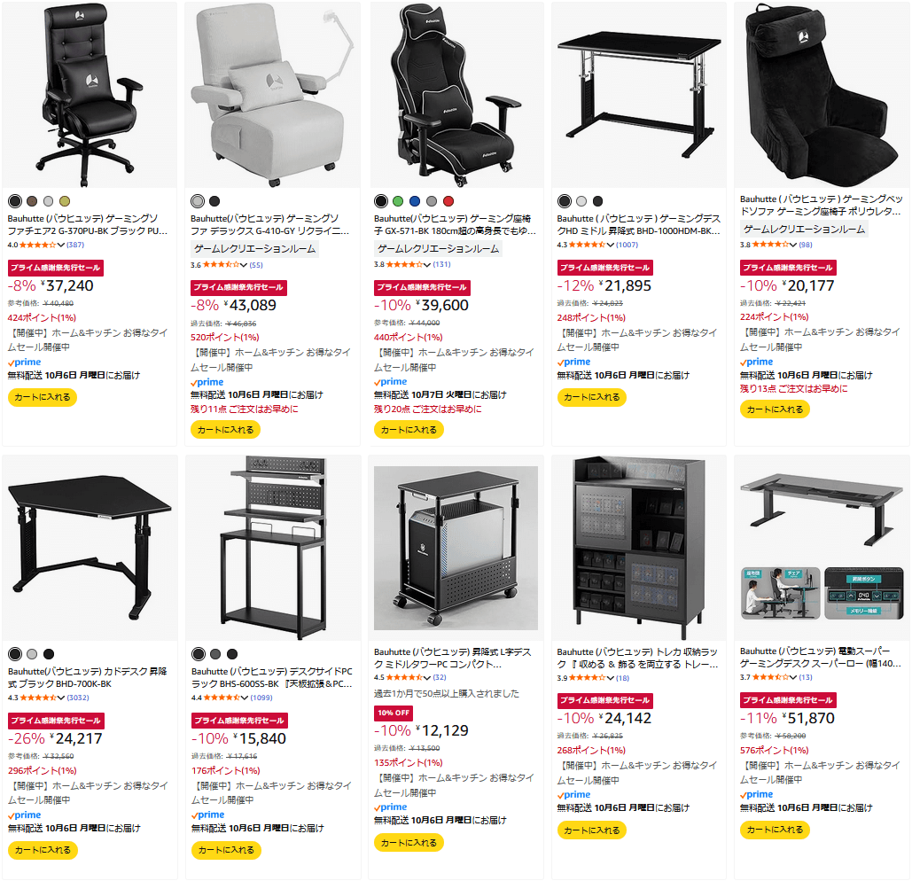ゲーミング家具が特価!Bauhutteがセール中。Amazonプライム感謝祭にて