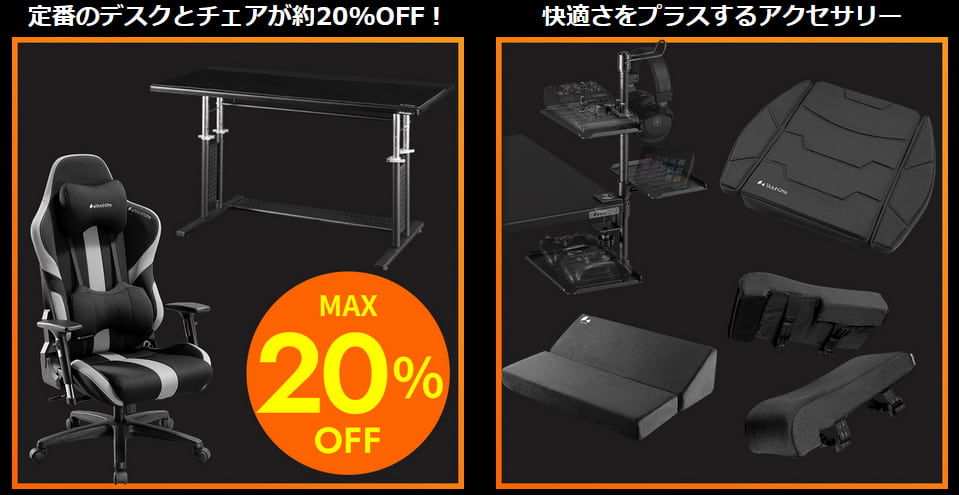 ゲーミング環境の構築や刷新、模様替えを考えていた人は、この機会にセールページを覗いてみてはいかがでしょうか。