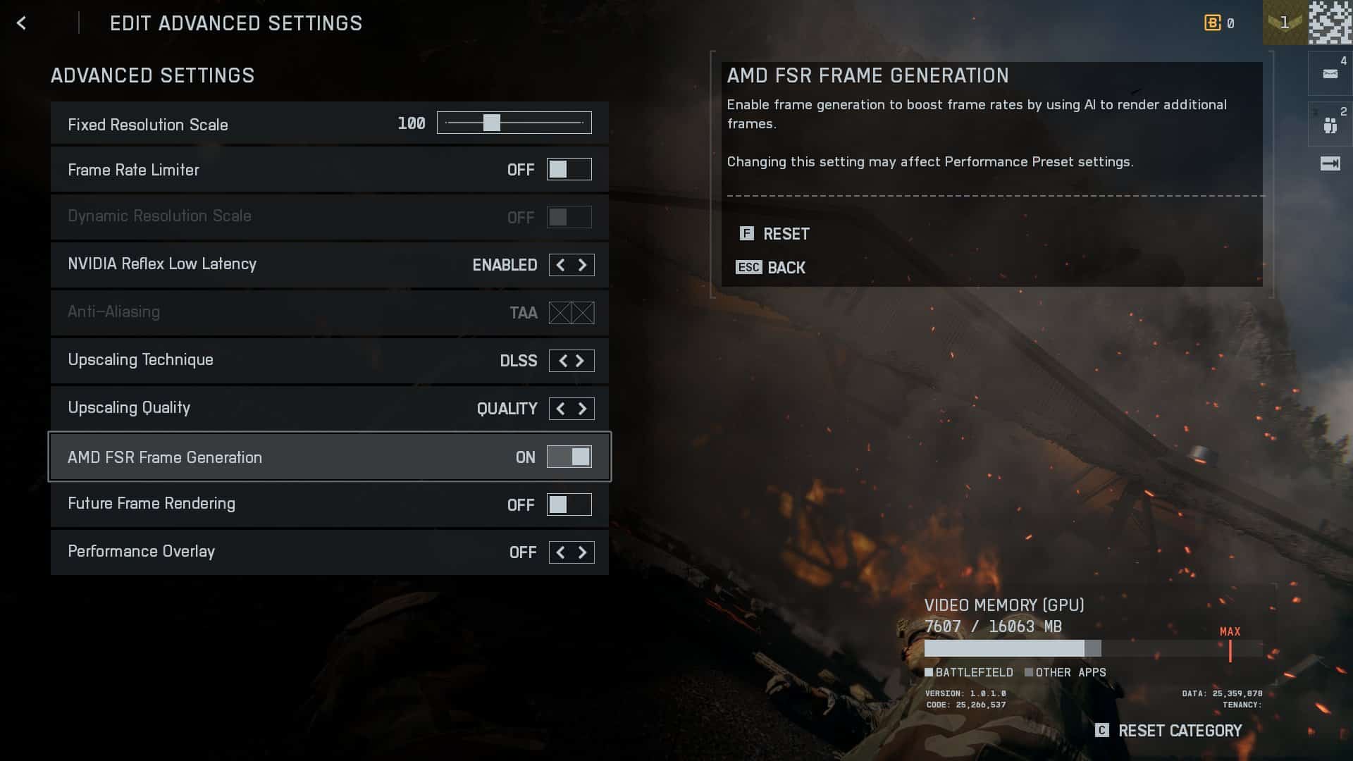 DLSS&FSR アップスケーリング・フレーム生成有効