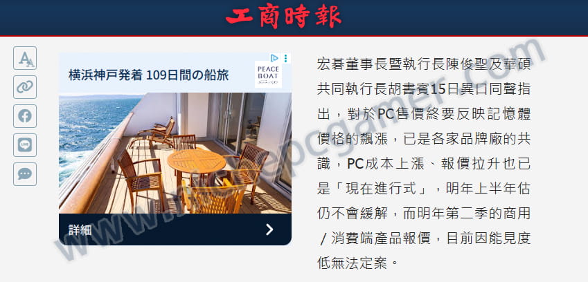 2025年12月15日、Acer CEOであるJason Chen氏と、ASUS共同CEOであるSamson Hu氏は、いずれも「高騰するメモリ価格は、PC価格に反映せざるを得ないという点で、各メーカーの認識は一致している」との見解を示した。 PCのコスト上昇と価格引き上げはすでに「進行中」であり、2026年上半期にこの傾向が和らぐ可能性は低い。 両社ともに値上げの通知をまだ正式には出していないものの、市場では2026年1月以降、消費者向け・企業向けを問わず、さまざまなメーカー各社がMSRPにコスト上昇分を反映させるとの見方が広まっている。 ― 工商時報 |