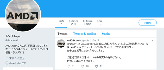 つい先日まで日本AMDのツイッターアカウントjapanamdがありましたが、