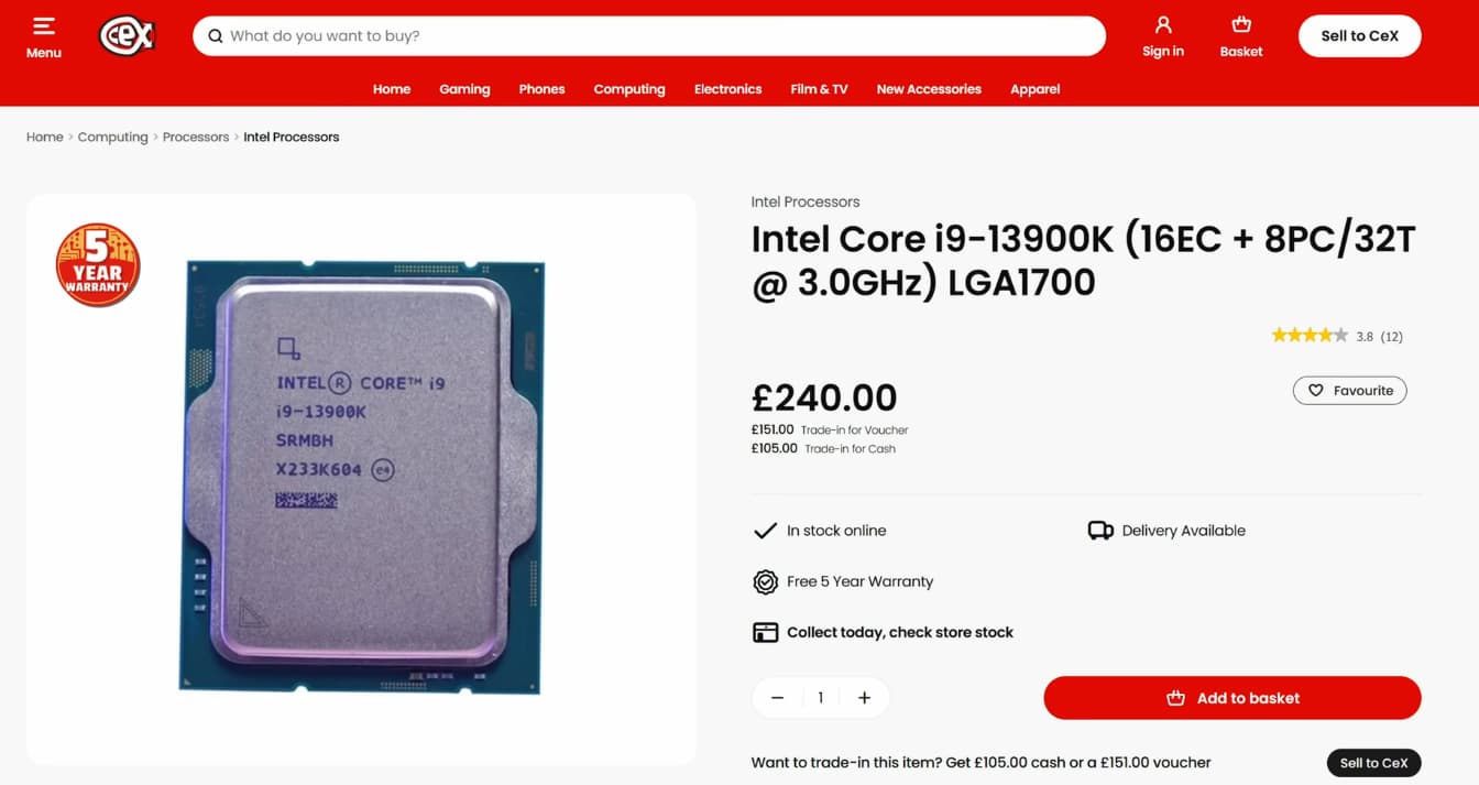 そんなIntel第13世代となるCore i9-13900Kを、YouTubeチャンネルのIceberg Techが中古で購入しました。購入価格は240ポンド、日本円にして約48,000円です。