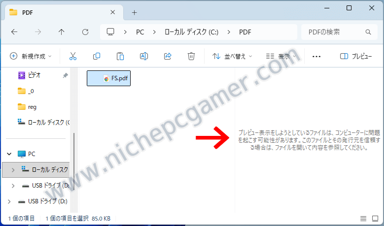 ファイルエクスプローラー(エクスプローラー)でPDFファイルのプレビュー表示ができない不具合が発生しています。