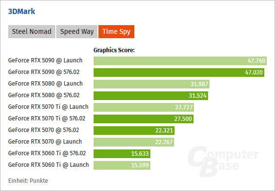 GeForce 576.02ドライバでGeForce RTX 5000シリーズの3DMarkスコアが向上する模様です。ドイツメディアのComputerBaseが報じました。