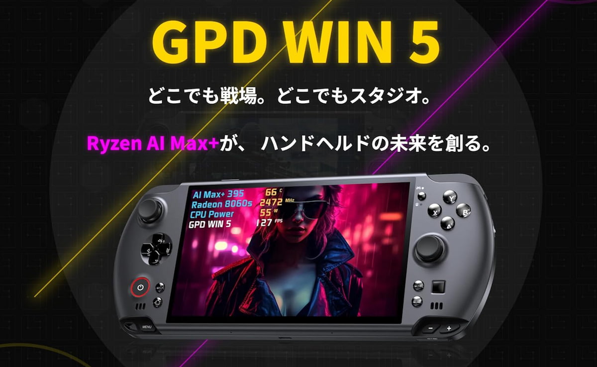 GPD正規販売店である株式会社天空は、AMD Ryzen Al Max+ 395を搭載した携帯ゲーミングPC『GPD WIN 5』の予約受付を開始しました。