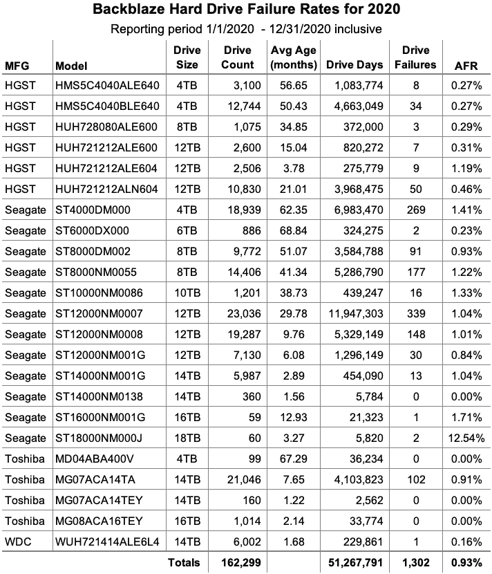 Backblazeは、データセンターで稼動しているハードディスク(以下、HDD)を対象に、2020年のHDD故障率を公開しました。