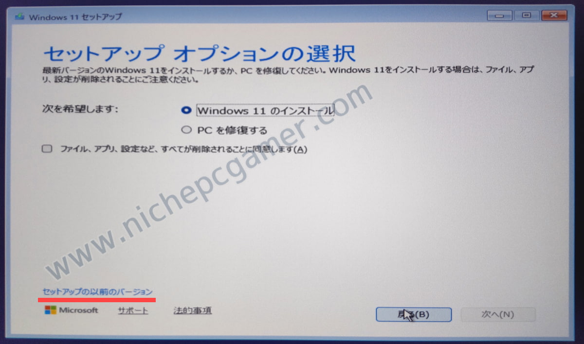 『セットアップの以前のバージョン』を選択してください。こっちからだと成功するはずです。