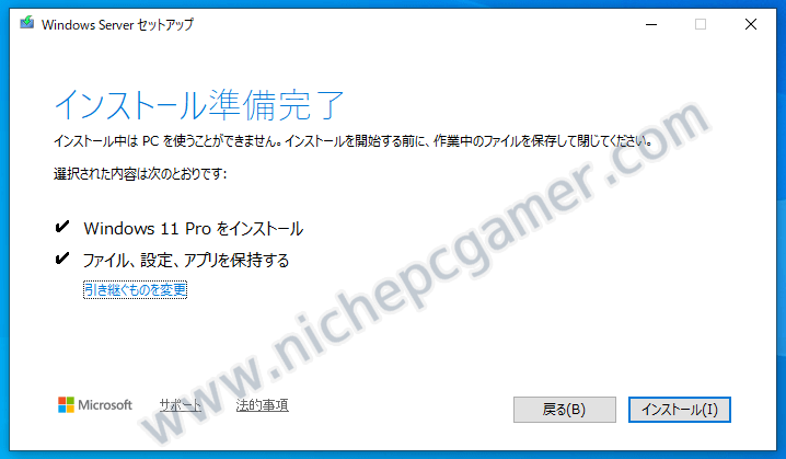 『7.)』でも説明しましたが、Windows Serverがインストールされることはありません。しばらく待っているとインストールが終了し、Windows10からWindows11へのアップグレードが完了します。