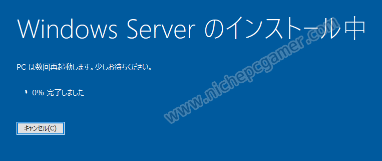 すると『Windows Server のインストール中』という画面に切り替わります。