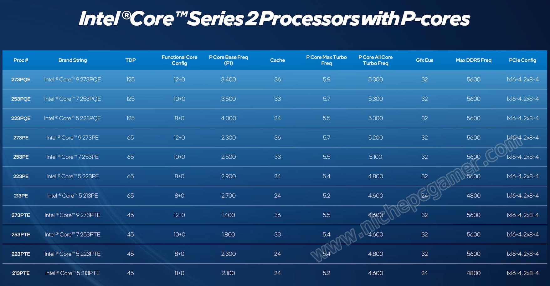 Intel、12P-Coreモデルを含むBartlett Lakeを正式発表。Core 9 273PQEなど11モデル。Core Series 2 Processor with P-cores (Bartlett Lake 12P)