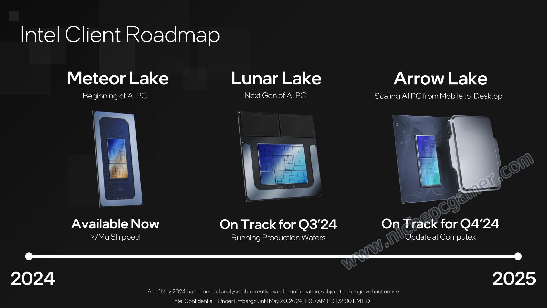 Intelによると、Arrow Lakeは、2024年Q4(10~12月)に発売予定とのこと。また、COMPUTEX 2024にて、Arrow Lakeの最新情報も発表予定とのことです。