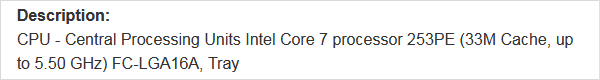 Core 7 253PEのスペックは10P-Coreで計10コア20スレッド。リザルトに動作クロックは書いていませんが、Mouser Electronicsのデータベースによると、最大ターボクロックは5.5GHzとされています。