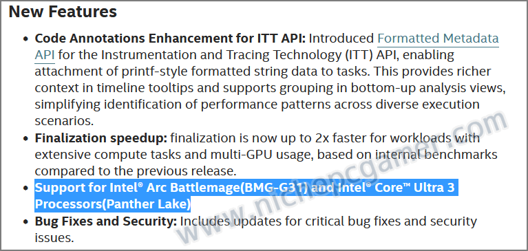 Intel公式Webサイトにて、2025年11月4日付けでアップデートされたIntel VTune Profilerリリースノートには以下ように記されています。