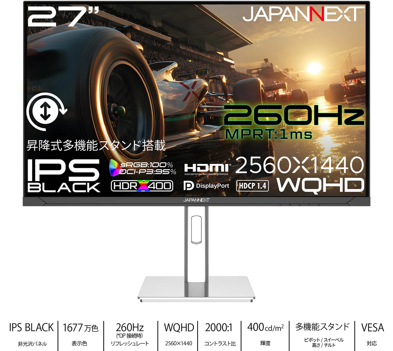 JAPANNEXT JN-IPSB27G260Q-HSP スペック