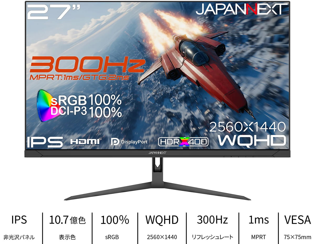 WQHD 300Hzゲーミングモニター『JN-i27G300Q』発売。お手頃価格の3万円台前半。JAPANNEXTから
