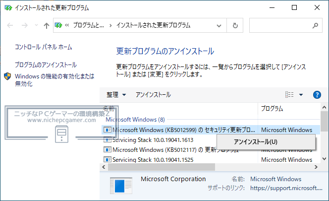 なお、KB5012599はセキュリティアップデートのため、アンインストールすると脆弱性が未修正のままになることには注意が必要です。