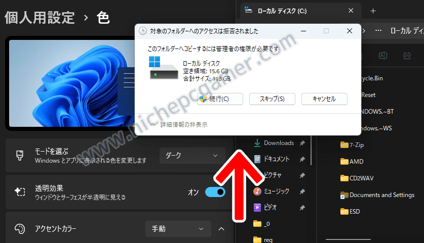 しかし、Windows11のダークモードは残念ながら不完全なもので、ダイアログなどさまざまな場所でダークモードになりきっていない部分が見られます。