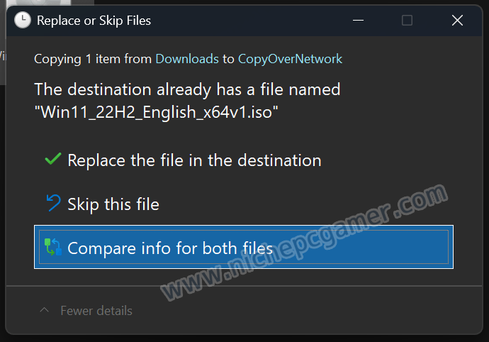 ▼ファイルエクスプローラーのダークモードを改善 ファイルエクスプローラーにおけるダークモードを改善いたしました。まずは、コピー、移動、削除などのダイアログから順次改善を行っています。以下の項目がちゃんとダークモードで表示されるようになりました。