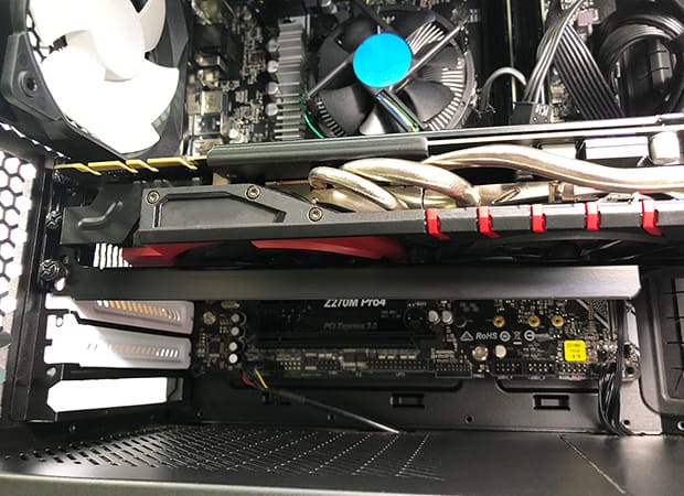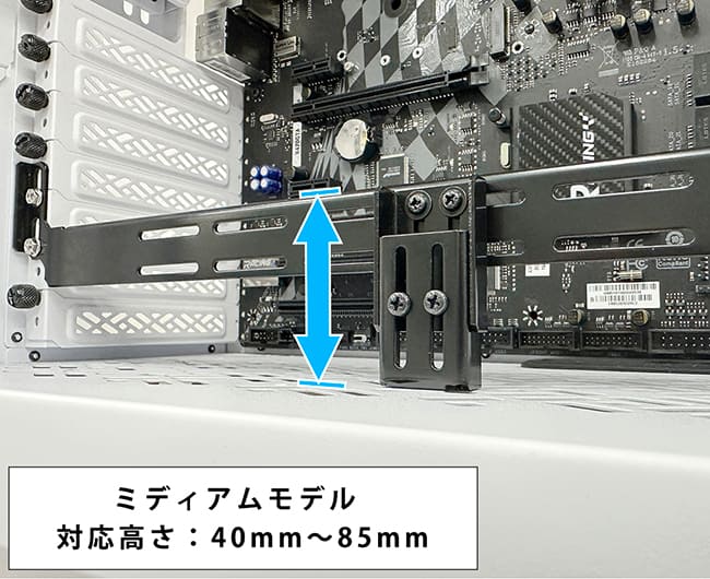 長尾製作所によると、この”突っ張り”を搭載したことで、超重量級グラボでもガッチリ支えることができるとのこと。