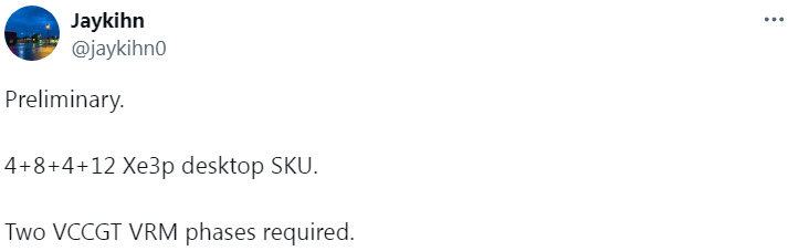 4+8+4+12 Xe3Pの(Nova Lake)デスクトップSKUが暫定的にあるようです。 VCCGT VRMフェーズが2つ必要です。 |