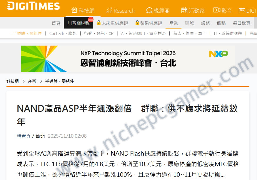 NAND価格が約半年で2倍に。Phison CEOが語る。時間が経つにつれてSSDなどの価格上昇が見込まれる