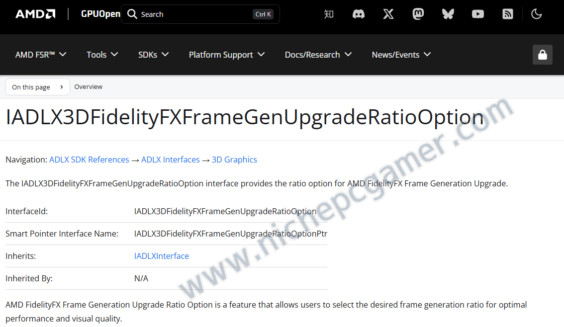 AMDが公開したAMD Device Library eXtra v1.5の『IADLX3DFidelityDXFrameGenUpgradeRatioOption』の説明文は以下のように記されています。