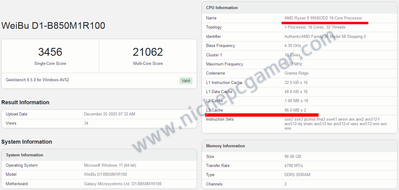 以前よりその存在がリークされていたRyzen 9 9950X3D2がGeekbenchに掲載されました。