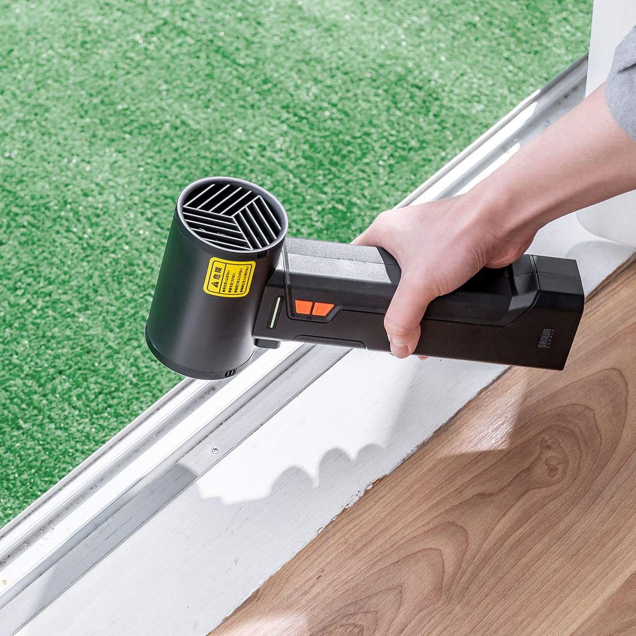 『200-CDADE005』は4段階調整が可能なバッテリー式の電動エアダスアー。最大50,000rpmの回転数と風速55m/sで、とてつもない爆風により頑固なホコリやゴミを一気に吹き飛ばすことができます。