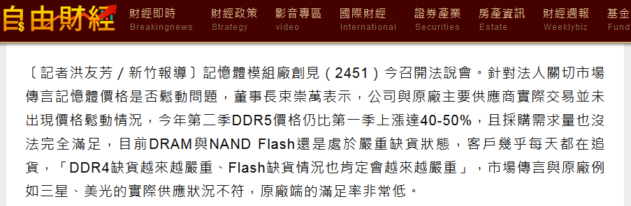 Transcendは、2026年第2四半期もDDR5メモリチップ価格が上昇していることを明らかにしました。台湾メディアの自由財經が報じました。