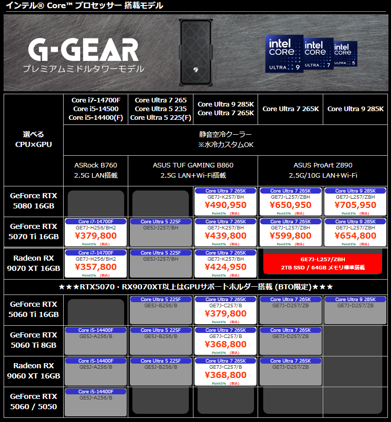 ツクモ、BTOゲーミングPCの受注を再開。豊富なラインナップが復活。より高騰する前に検討を。Ryzen 9000シリーズやGeForce RTX 5000シリーズ搭載モデルなどが販売中