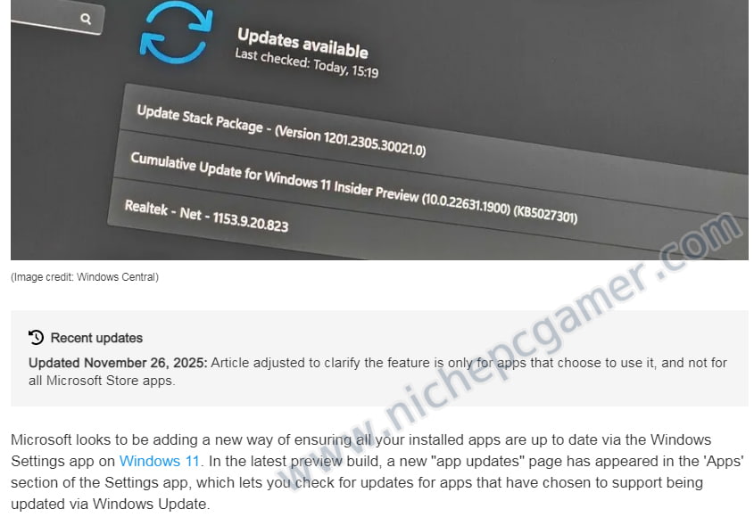 Microsoftは、Windows11の『設定』からアプリのアップデートをできるように取り組んでいる模様です。海外メディアのWindows Centralが報じました。
